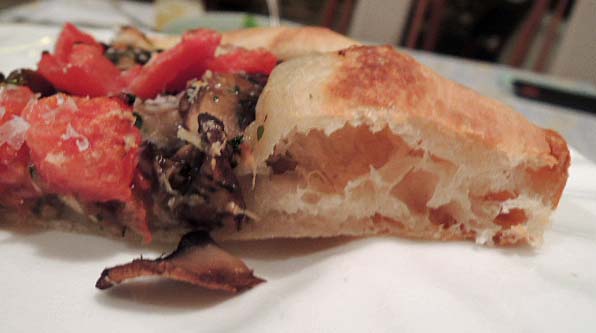 Both pizzas actually had pretty substantial toppings, but they did not include "sauce." I am thinking that, when vegetables are cooked prior to putting them on pizza, they give off less moisture, so the crust doesn't get soggy.