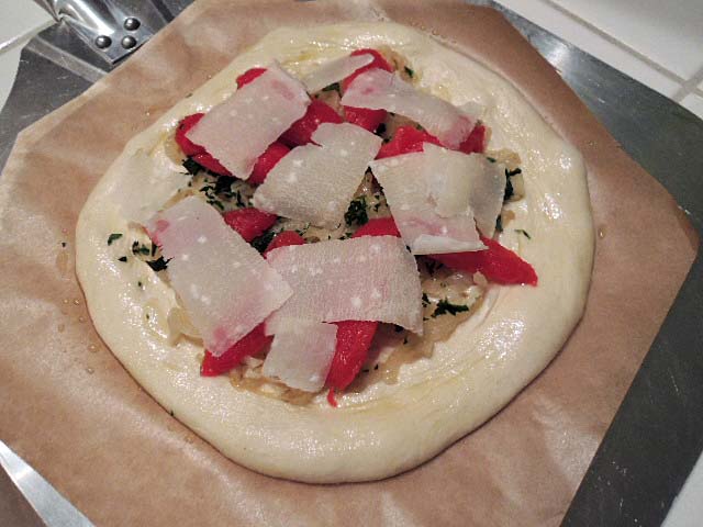 Re. toppings: There is a Chez Panisse "Pasta, Pizza and Calzone" cookbook that I got from the library. It has dozens of wonderful ideas that inspired the combination of toppings I used.