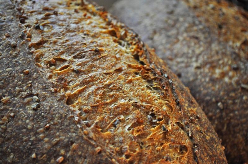 The crust and bloom plus additional open cracking on the tinned loaves is incredible.   The open crumb is pretty good for 100% whole grain bread too.  Nice baking all the way around.  Don't you just love the taste that whole multi-grains provide?  Those are my kind of breads.