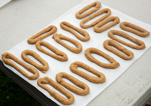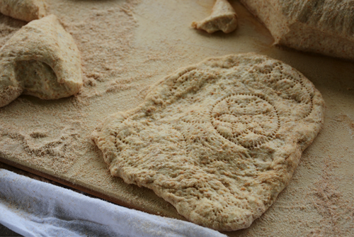 The dough was docked using beautiful, Turkish docking tools Naomi brought (the tool was floured first to prevent sticking). I wish I’d asked how to spell the name of this tool, but it was pronounced “checkitch”.