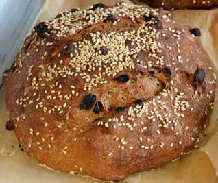 Jan’s bread was absolutely delicious, the one I tasted made with Fairhaven’s Hard Red wheat, sour and sponge preferments, and 60% fruit (30% raisin and 30% dried apple).