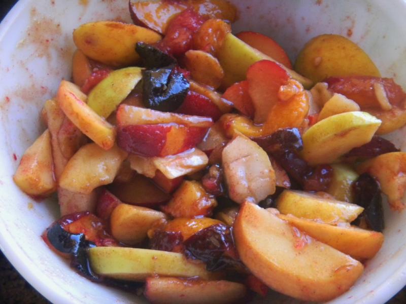 A mixed apple and stone fruit crisp is a fine desert for any dinner and no dinner is complete without a salad.
