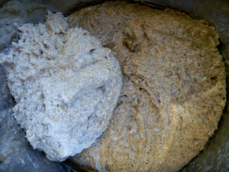 We divided the autolyse in half. One half we mated with the SD levain to make a straight SD bread. The other half we divided in half again and made one into a straight YW bread and the other half go the SD/YW combo levain. All of these whole grain breads came in at over 90% hydration but less than 92%