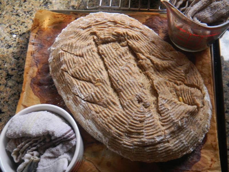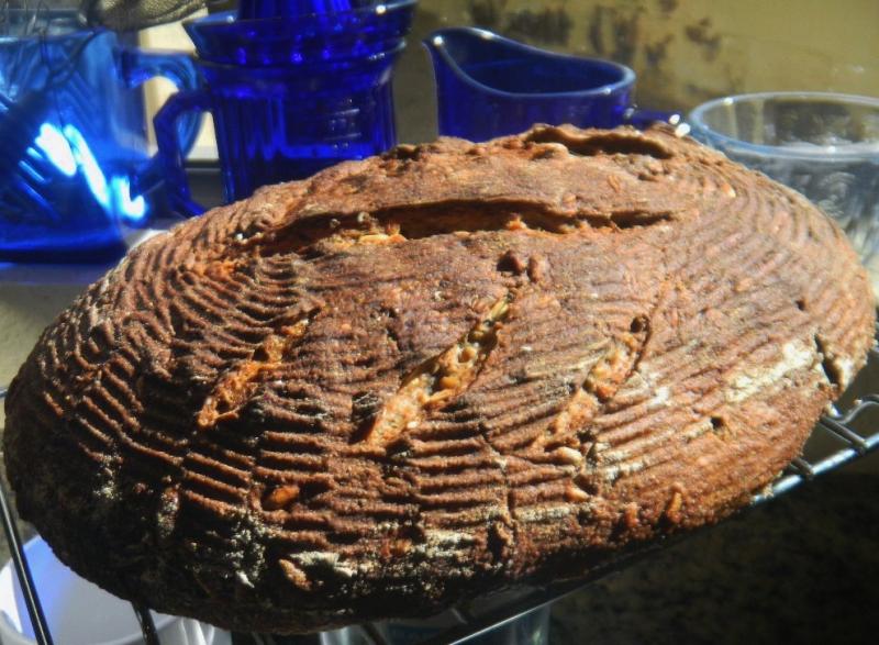 You will see in the pictures where there is some rice flour showing on the sides of these loafs that were proofed in baskets. Since most of my bakes tend to be more whole grains and are in the 80-100% hydration range now a days - they can still be very sticky. So sometimes, like this bake, after the dough goes into the basket I will lightly dust the edge of the dough closest to the sides of the basket - anout 1 inch wide - assuming that this will be the part that eventually touches the basket as the dough rises.