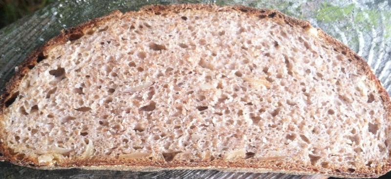 Lovely open crumb, and a lovely burnished crust.