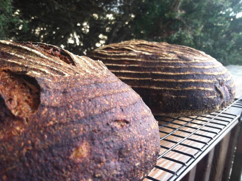 Hello All. Gettin ready for a storm here in the Pacific Northwest. Fortunately it was a beautiful morning and bread traded swiftly. I'm still unsure how I feel about this loaf. I couldn't really decide what to make this week so Thursday night I figured I'd build a rye starter to work a second build off of and until the last minute I was just gonna make a 40% rye sour. Couldn't do it. Had to see what I could add for fun. Cardamom is where it all started, then the almonds came into play and then the candied citrus (maybe a bad idea????). Someone mentioned using cinnamon in dough at 1% which I thought would be quite intense. I used .3% for the cardamom which was quite nice. I knew to bring this crunchy lean dough together a small amount of sugar would meld flavors. I used maple syrup cause it was on hand. (honey would be a better choice I think). Once again the jury is still out on this one. On its own its certainly not bad but maybe a little odd. With a smear of butter its very good and with almond butter and honey its a delight. I'd like to get some cured meats to see how that goes. I guess I'll start thinkin bout next week now so I don't do another kitchen sink loaf next week.