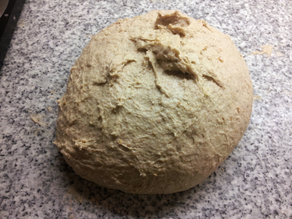 The dough, withsome gluten development, after 2 minutes of slap-and-fold. Ready for the bulk proof: