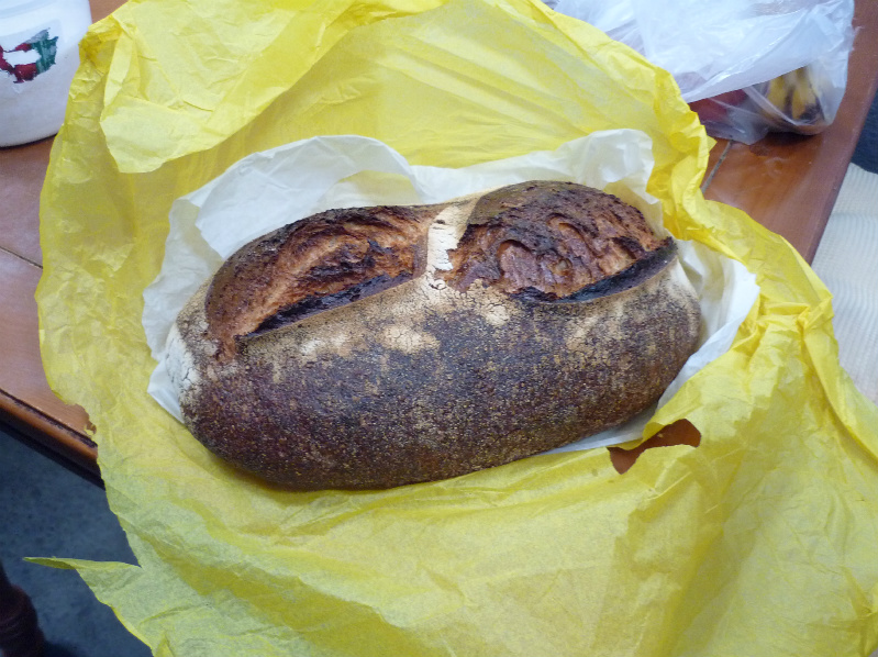 It was lovingly wrapped and taped and handed to me, i had a pocket full of change and was sorting the gold coins from the silver and asked the price, $12.00 was the reply which was about half as much again as i was expecting , Oh well perhaps i wont buy a danish for my 2 work colleagues after all. As luck would have it my trousers were being weighed down with coins so i had enough in small change and was still able to put a couple of dollars back. This had to be my most expensive loaf of bread ever purchased it will have to be good!