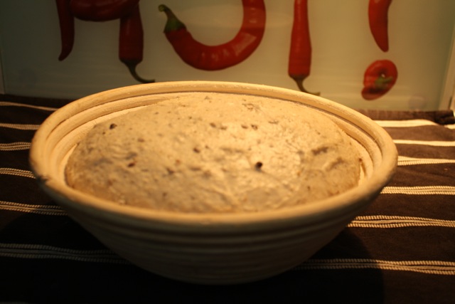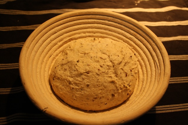 I put the banneton into a big ziplock bag to keep in the moisture and put it in the fridge to rise overnight and while I'm at work the following day.