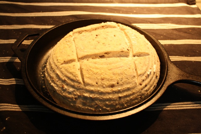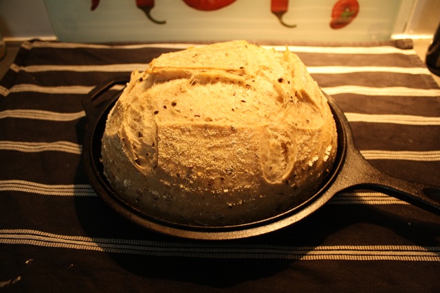 The lid keeps in the moisture and heat for the first 20 minutes, preventing crust formation and allowing for maximum oven-spring. After 20 minutes the lid comes off and the loaf is nicely risen.