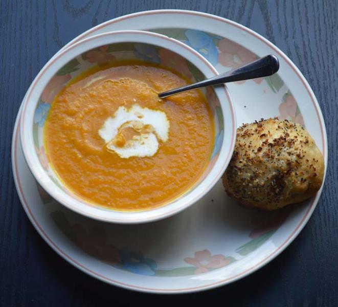 Most recipes call for roasting the squash and carrots, but I thought I would go one better and smoked the veggies in my second favourite cooking toy, my electric smoker for one hour with applewood. OH MY! Does that little kiss of smoke EVER do wonders for the flavours!