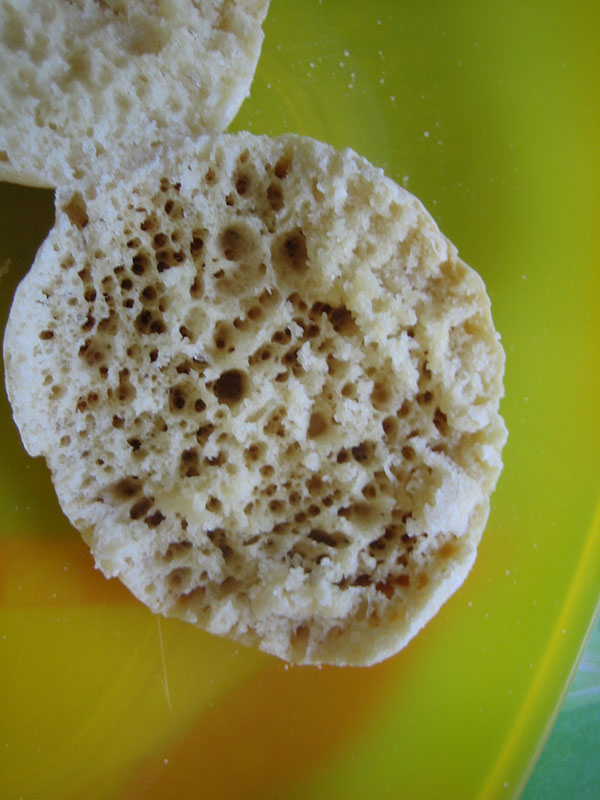 I made a couple batches of Floyds English muffins or rather kjknits recipe. They tasted good but I thought they were a little tough on the tops and bottoms where they baked in the spider pan. Does anyone have an idea how to make these totally tasty? I used AP flour and followed the formula pretty closely.