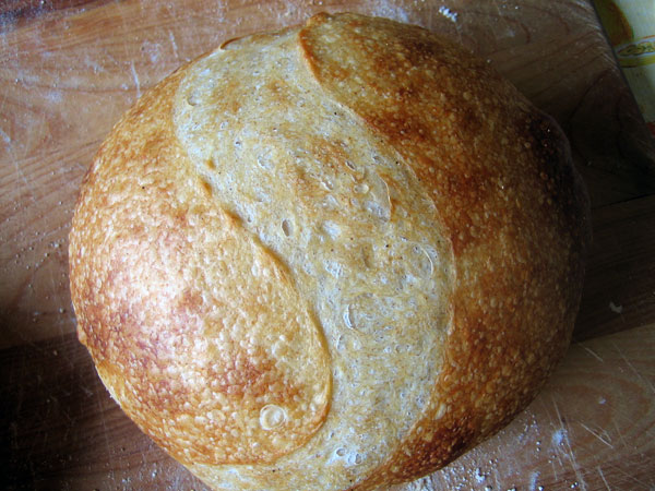 I also make something like a cross between my standard pain sur poolish and the famous no knead bread.