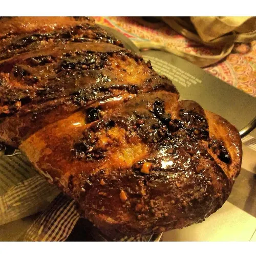 I added more whole grain flour, in this case, spelt instead of regular wheat. I added maple syrup instead of honey and change the kind of nuts and dried fruits.