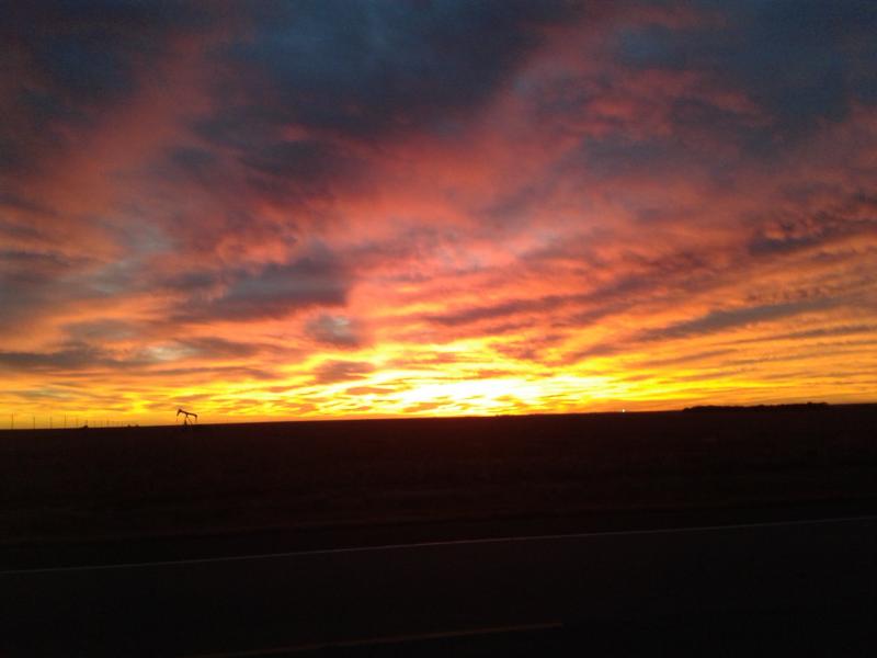 Having driven through the snow... I question the statement "pure as the driven snow" that snow didn't look too pure!... LOL... toward the end of our journey we were rewarded with a spectacular sunrise in Kansas.and by evening we were home again safe, sound, and very glad we made the trip. What a joy to spend our sister's birthday with her and her family. ..