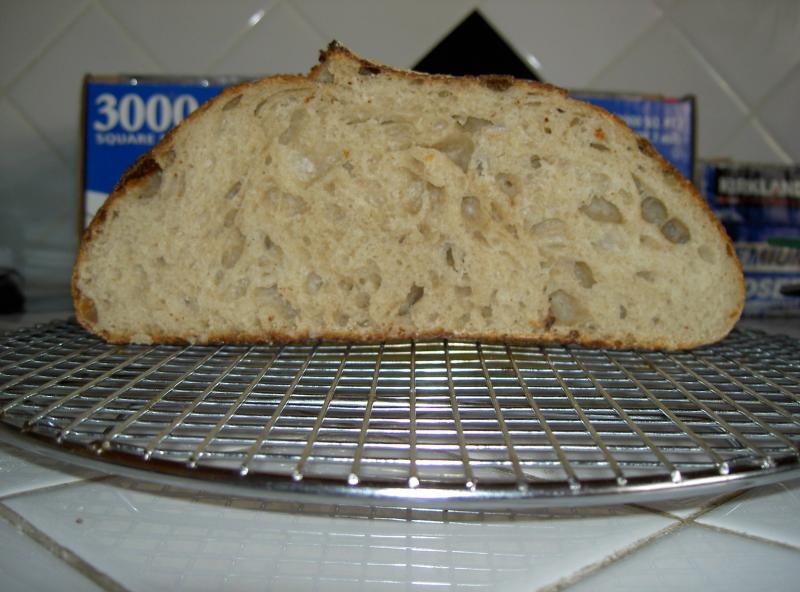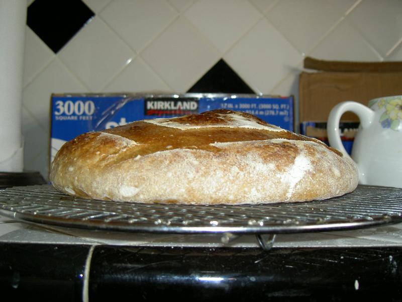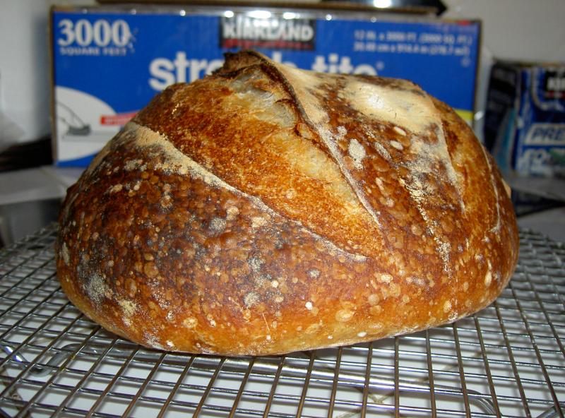 Actually, the 2nd loaf was less sour, but I prefer that. I think it's cause the first loaf was proofed in my oven with a hot water bath @ 78-80F.
