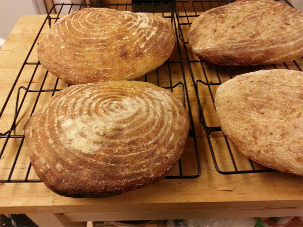 The loaves just spread out as soon as they were removed from the brotform. Slashing the loaves was like letting the air out of a balloon, so I didn't slash the second batch.