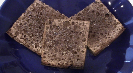 Pumpernickel Flatbread, toasted and slathered with olive oil