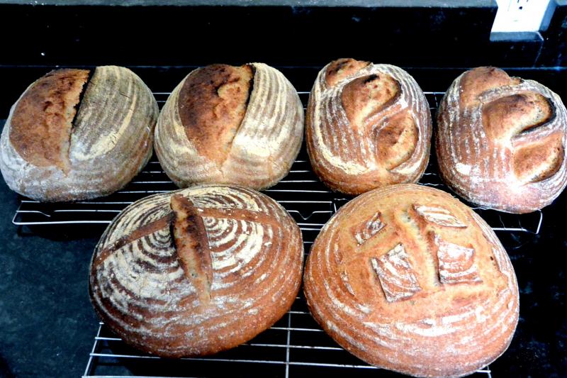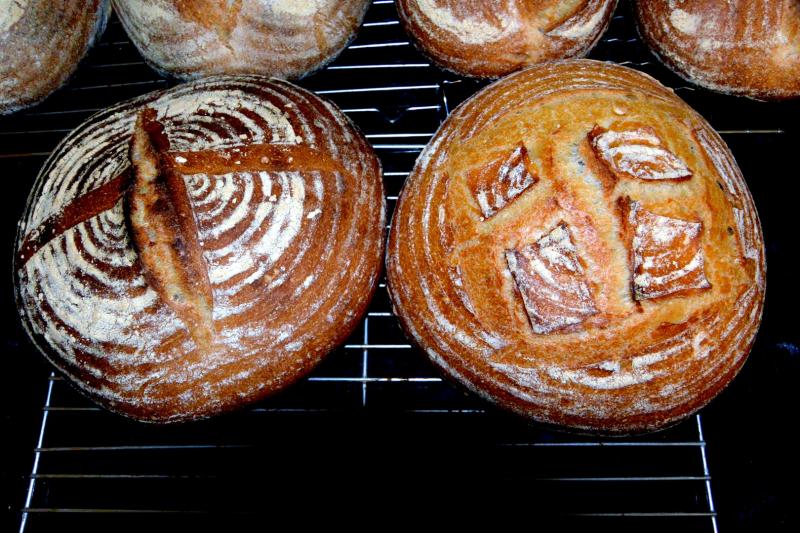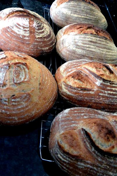 They all look delicious! Interesting experiment. Which loaves are which? I am guessing the oval with one slash are the lowest hydration and the front round ones are the highest? Is there much variation in the crumb?