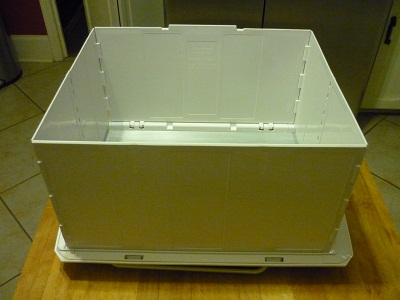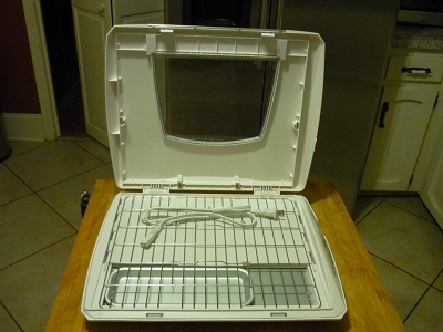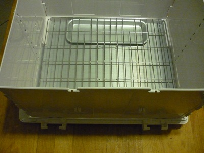 Inside, with the rack in place. The little pan holds water to keep the humidty up.