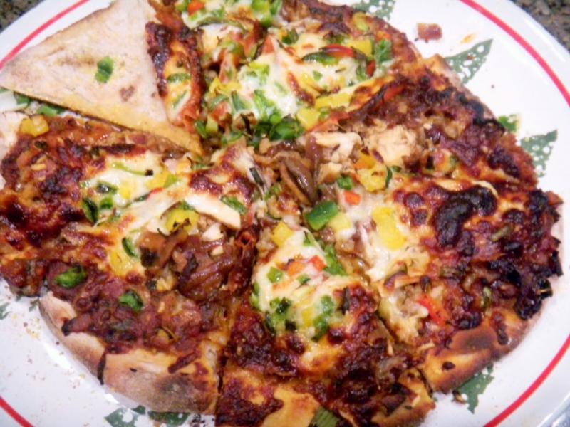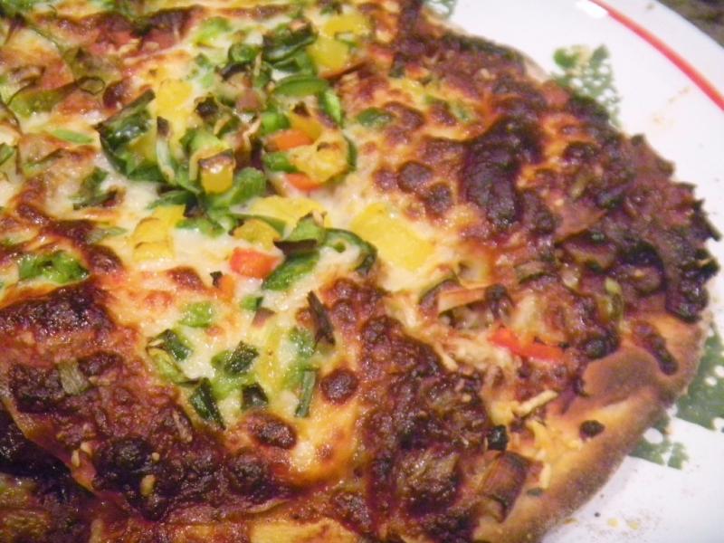 The toppings included; pepperoni, hot Italian sausage and grilled chicken for the meats, mozzarella Parmesan and Pecorino for the cheeses, onion and mushroom for the caramelized portion, green red and yellow sweet pepper, Serrano, jalapeno and Poblano peppers for the hotter ones with green onion and fresh basil for the garnish on top.