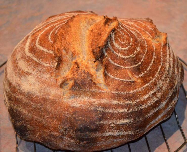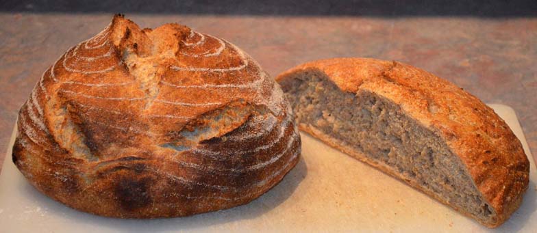 Here is the second loaf. I retarded it cold outside and no score this bake. The loaf sprung up a lot more than the scored boule.