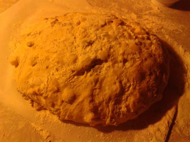 Here is the dough.  Helen's comment was that this was a nice little "cheesy" dough ball... looks great! The dough was moist and somewhat sticky. Nice and soft.