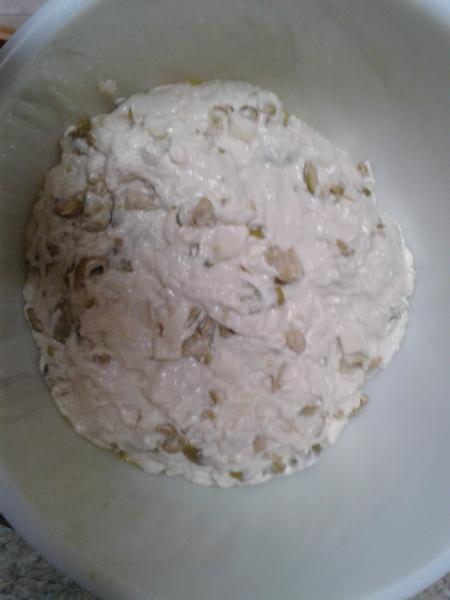Barb used jalapeno's and cheddar... there was an olive "sneaker" in the family olive jar...