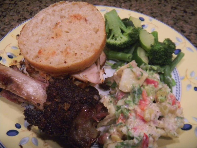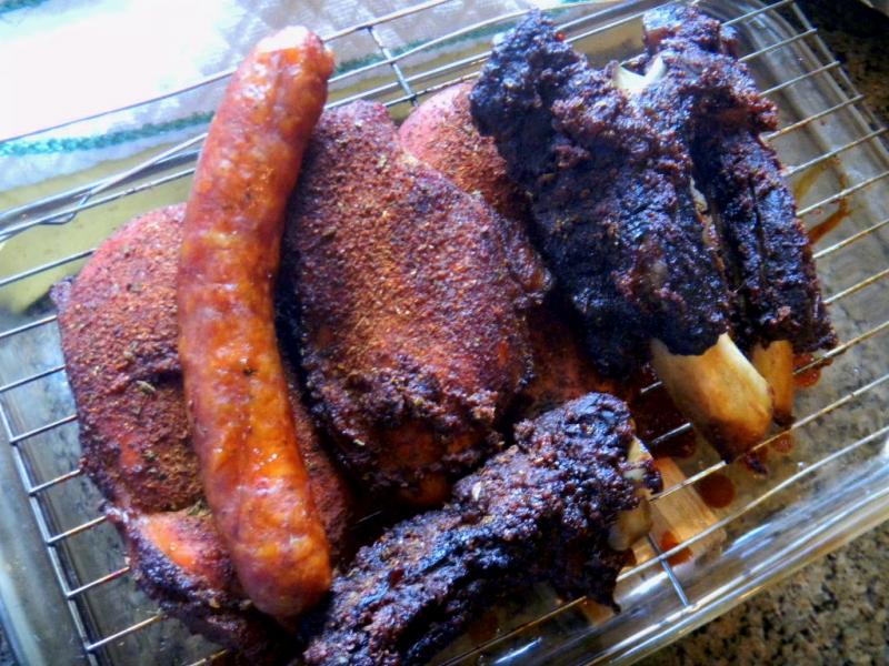 Bread didn't make the list for sushi Wednesday with smoked salmon and ultra fine swordfish. But it did for smoked meat Thursday of sausage chicken breast and beef ribs.