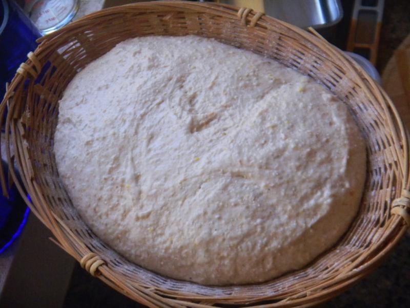 We had some potato water saved from making potato salad but forgot to use it for this bread. But we did remember to use a different process for this bread. We did a 3 stage build of the levain over 12 hours putting all the whole grains in the levain.