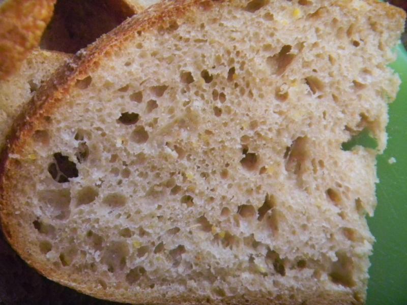 It bloomed, sprang and browned well with small blisters this time –why we have no idea and a couple of ears to hear the cooling cracking sounds. Can’t wait to cut this bread when it cools for a hopefully sour taste and peek at the crumb. Well, the crumb is very soft and moist with medium holes and sour. A very nice overall white SD bread. Very tasty.