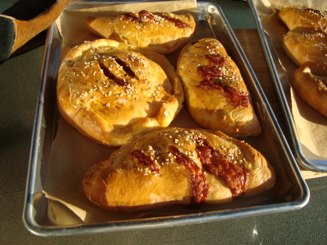 I love provolone and it did taste wonderful in the calzone. They definately need a good egg yolk wash for a nice taste tempting color. I think the red drizzle coming out of the slit's is from the sun-dried tomato.