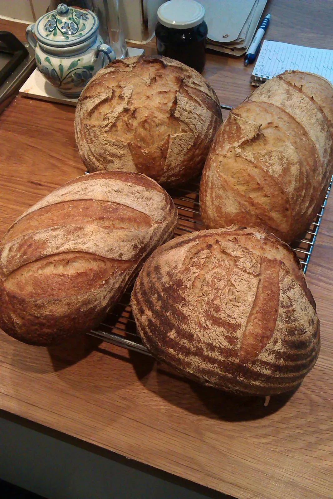 As to your first questions, perhaps I can explain in simpler terms (for my own benefit!): the leaven in the final dough is by weight almost exactly the same as the weight of the flours- hence 101%. So, for example, in each loaf, I would use 310g sourdough leaven and 309g of flour.