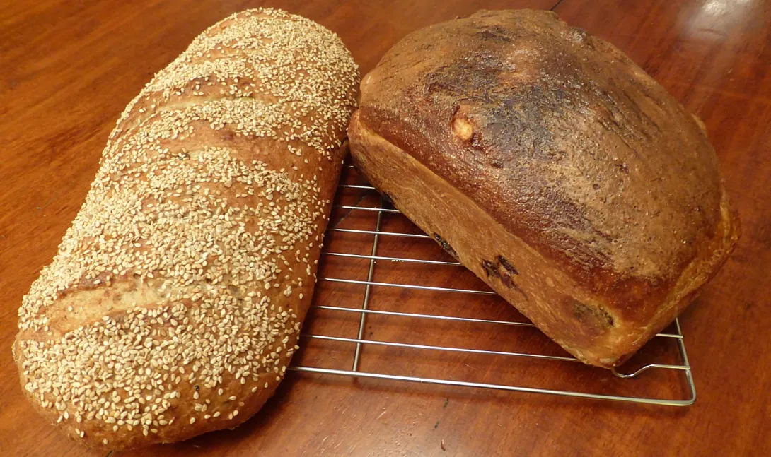 The 50/50 rye bread has a nice aromatic flavour to it, and you can really taste the rye. The sesame seeds on the top are great. I do that a lot with my bread. The currant bread has a very mellow texture and crumb, and it's not overly sweet. It's lovely with just a bit of butter on it for breakfast. Which is what I'm having right now!