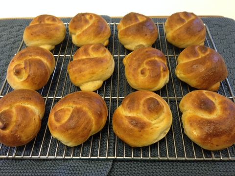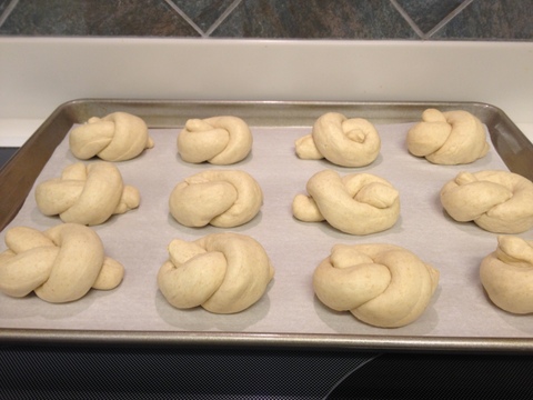 I tried isand66’s recipe for Ricotta Garlic Knots http://weightloss-slim.fit/node/36664/ricotta-garlic-knots%3C/a%3E and I am very glad I did. The addition of ricotta and the baking style intrigued me. While this is a straight dough (it uses instant dry yeast), it is bulk fermented in the fridge and baked at a high oven temp with steam. I didn't have kamut flour so I substituted white whole wheat. Here are the rolls after shaping and before proofing.