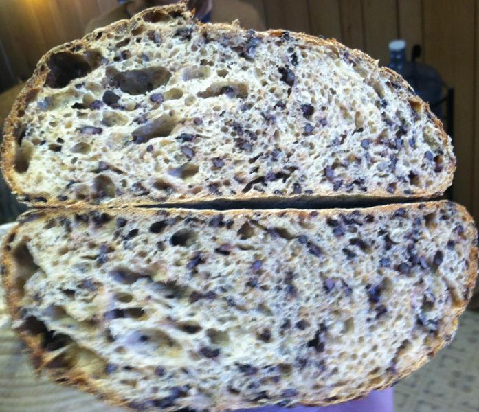 with Karin's Wild Rice bread we like so much. What a great looking bread inside and out. Mixed up some left over turkey stuffing and Japanese black rice, both made with home made stock and they were terrific together for a dinner starch. Would be great as a rice and altus combined in a bread i'm guessing.