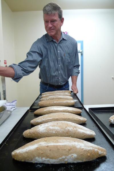 Michael the Hospitality Technician prepares the loaves for washing slashing ready for the oven.