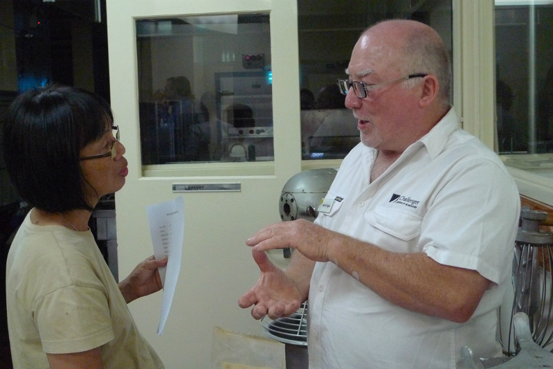 i recently attended one of Derek Hughes' sourdough bread baking classes at Beaconsfield Challenger Institutes campus. There were 12 attendees in all, most with no bread-making experience. as a home baker of sourdough bread myself,i was struck by the depth of Derek's knowledge and his deft dough handling and shaping skills He was a pro baker for many years,and it shows .He even looks like a baker (see pic)