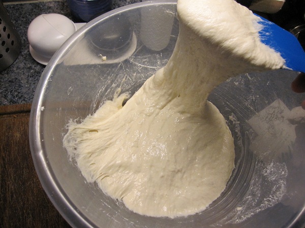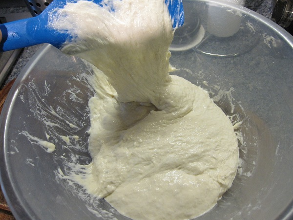 After 2 S+Fs the dough looked like this, sloppy but coming together: