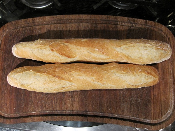 My regular baguette recipe (from my local Artisan Bakery) uses about 66% hydration.  This is my first foray into a much more difficult 80% hydration.  This was a real challenge and the results far from perfect, but the experience gained along the way is invaluable and worth the trouble.  I would say without any hesitation that these have been the tastiest baguettes I have ever made and the closest I have come to that genuine baguette flavour expectation.