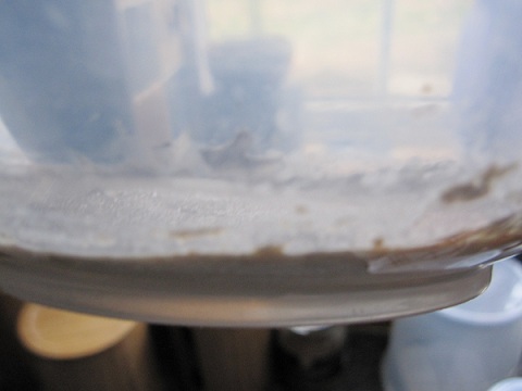 It is now 2-3 days into the experiment. Neither starter has been fed at all since the first day. The "Air Starter" has been stirred regularly and left cited by the grain mill. The grain mill has been used throwing out plenty of grain dust. Nevertheless, the air starter shows absolutely no signs at all of activity, no bubbles, no change in volume. It looks like this:
