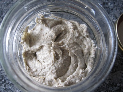 The second candidate, the "Grain Starter" I simply took freshly milled rye flour and water and mixed to the same pastey level and placed in a small kilner jar which I have now sealed with its screw top.