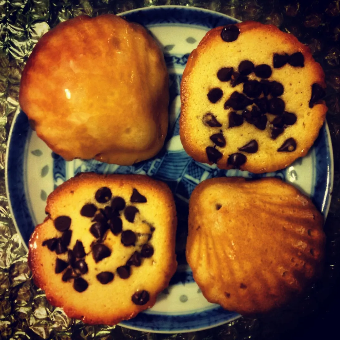 Swiped the basic recipe for these from David Lebovitz's site (his were scallops.) Only added the chocolate chips because I had halved the recipe but then came up a bit short for the sixteen Madeleines I was baking in the cockleshell pans. Can't say I taste the Meyer lemon I threw in, oh well.
