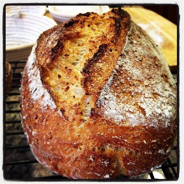 Wonderful post, and your sourdough loaf looks beautiful. I have a question about the scoring you did. I just posted in the 'Challenges' forum myself about my scoring woes on a loaf very similar in shape to yours: I am slashing straight down the middle and achieving a sadly lopsided loaf. I notice that you score towards one side of the loaf, with beautiful results, and am wondering if you could explain the reasoning behind that cut or maybe point me towards somewhere I might read more about it. Thank you!