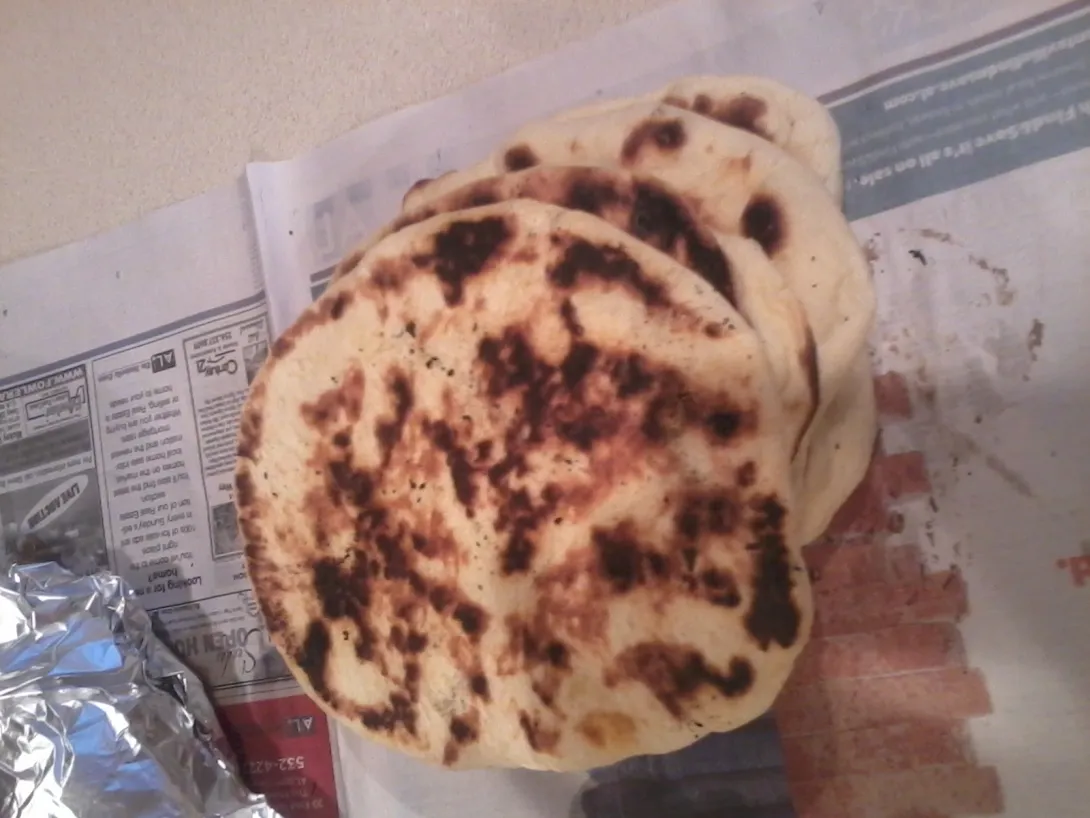 Hello - I've never posted before, but frequently come here for ideas/guidance. I just got a kamado grill (Vision Grills brand from Costco...same style as Big Green Egg/Kamado Joe, but "only" $600). So anyways, I've been playing around and decided to try making naan after my chicken was cooked today. So here are the details (oh - I've NEVER made naan before, nor any other Indian food, so this probably lacks authenticity, but it came out quite good :) ) Picture attached - it's a stack of 5. Looks a little burned, but it's not...I did one in less time and it had practically no brown spots, and it wasn't as good. Brown spotted ones have no burnt flavor at all: