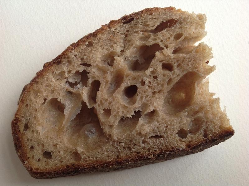 However, despite not having quite as much oven spring as usual, they had the most surface blisters and the best crumb so far. Next time I'll go with this longer fermentation period!
