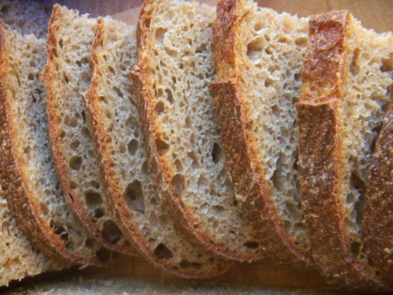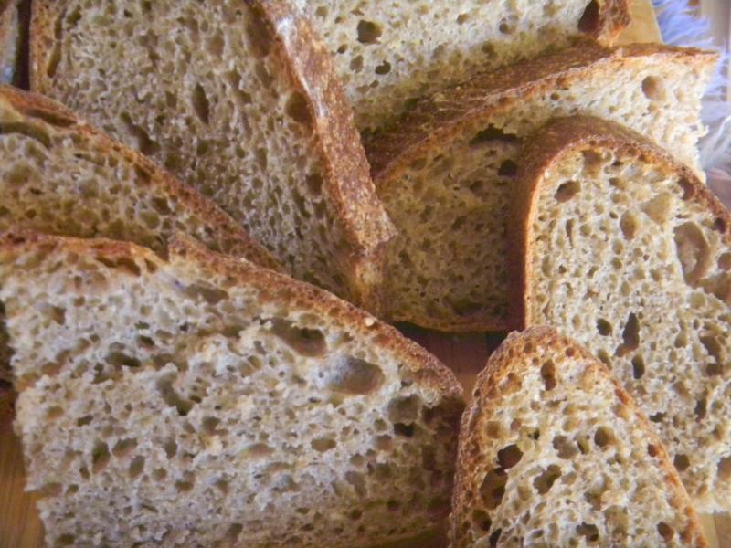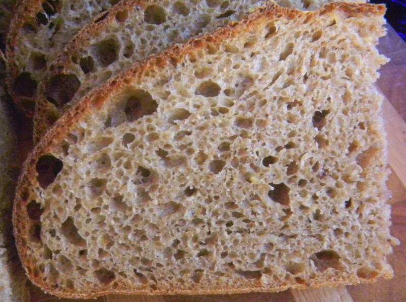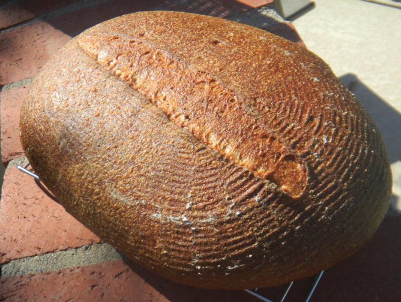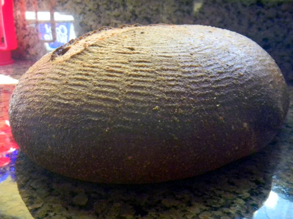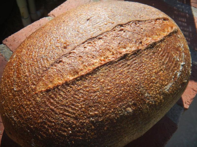 Once again, because of the whole grains, the blisters everywhere but were on the small side, unlike white bread where the blisters are gigantic.  The fig soaker water really put the mahogany color on this crust like dried fruit soaker waters used as dough liquids seem to do most always.