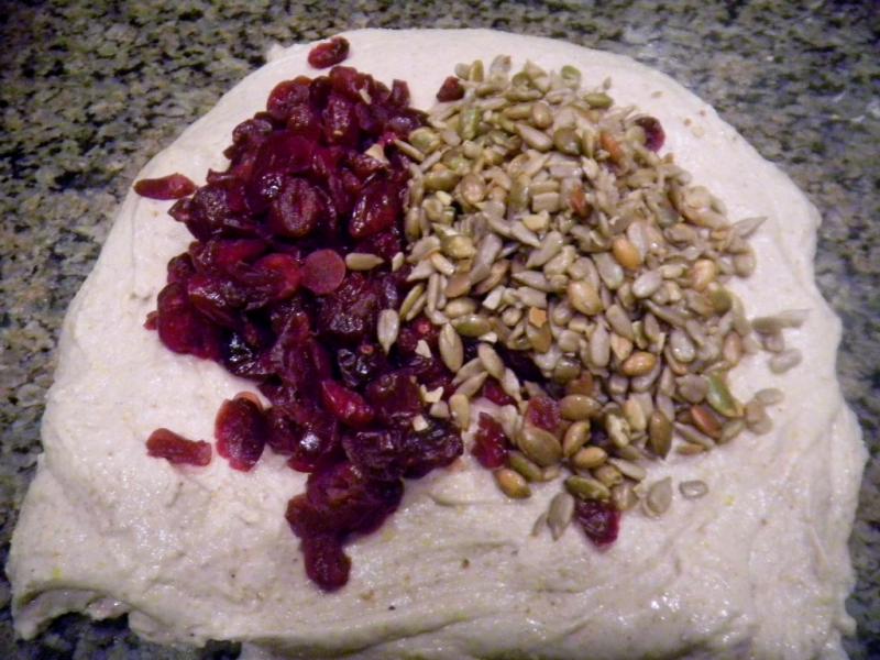 We incorporated the cranberries, pumpkin and sunflower seeds into the festive loaf on the 2nd set of S&F’s and they were thoroughly distributed by the end if the 3rd set. The 11% shown on the formula for these add ins is really twice as high since the formula is for the combined loaves and these festive add ins only went into one of the them. That loaf was packed with fruit and seeds otherwise, as Lucy said, it wouldn’t be festive enough.