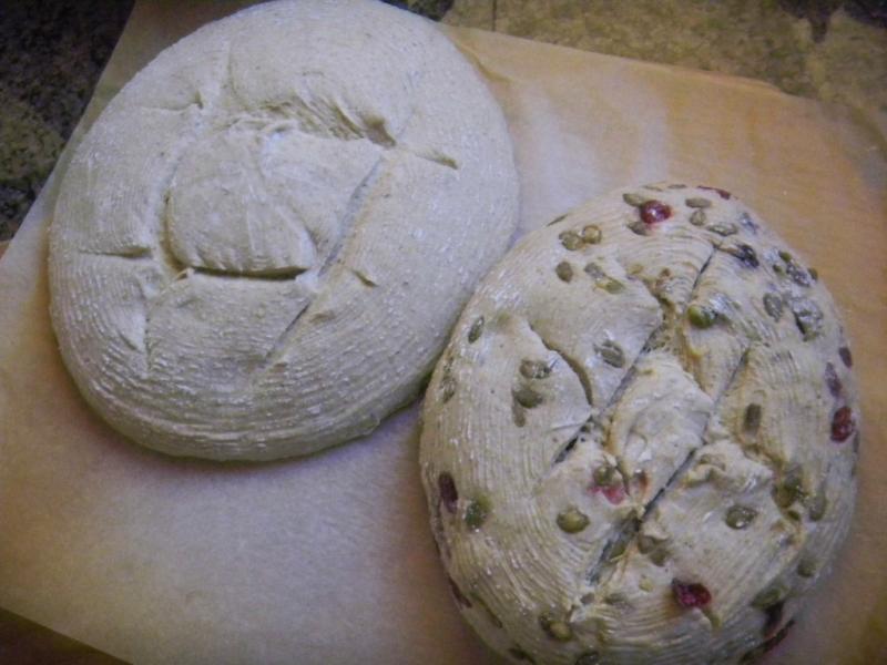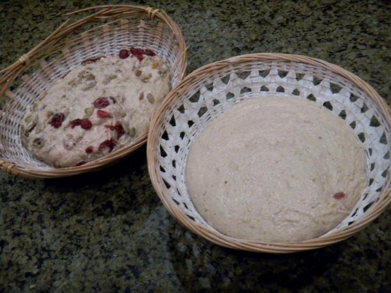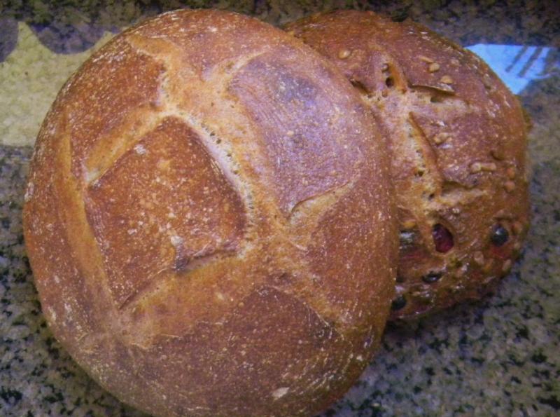 The plain loaf weighed 762 g and the cranberry weight is pre-soak weight |