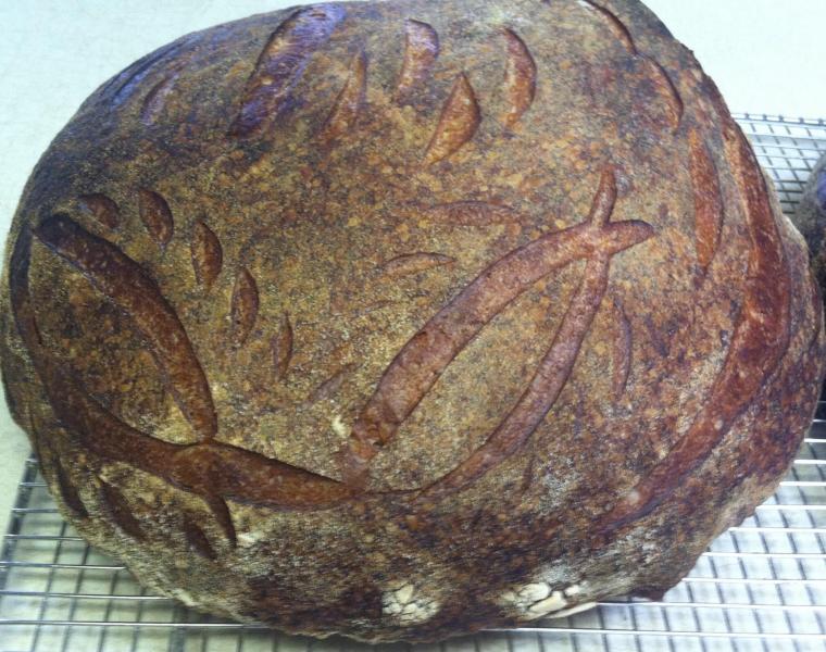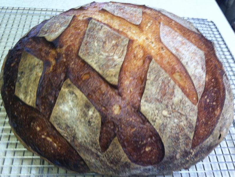 So how does the taste compare to the Pain de Maggiore?. I suppose they are so different that it is hard to compare them. I've made this bread at half the size and it is great and I'm wondering if the extra size makes a big difference ? David might be on to something. The PDM is hard to beat taste wise . Love the scoring too. Well done and happy baking!